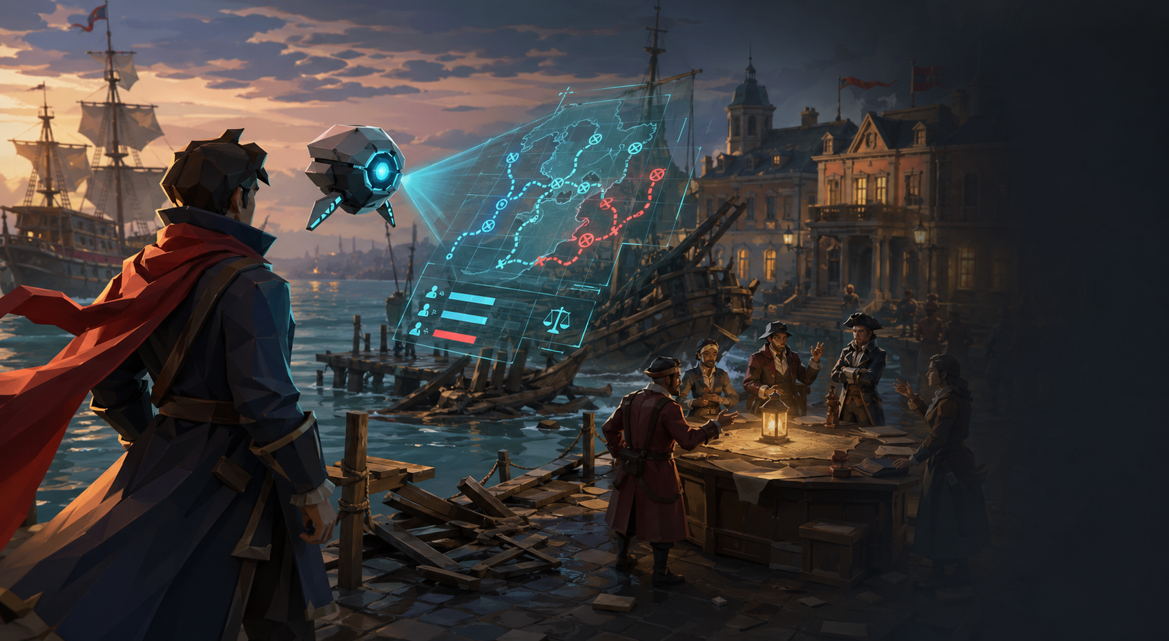 Investigate an accident caused by an AI route recommendation, then choose responsible actions at the harbor council.